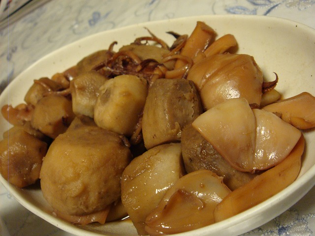 定番の里芋とヒイカ&シリヤケイカの煮物です。