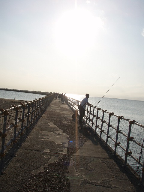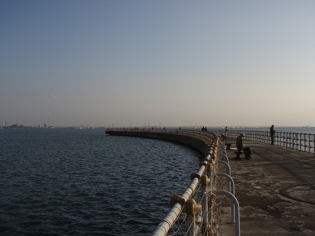 日曜日の午後なので駐車場にも車が一杯だったので予想はしていましたが 岸壁は釣り人で一杯です。