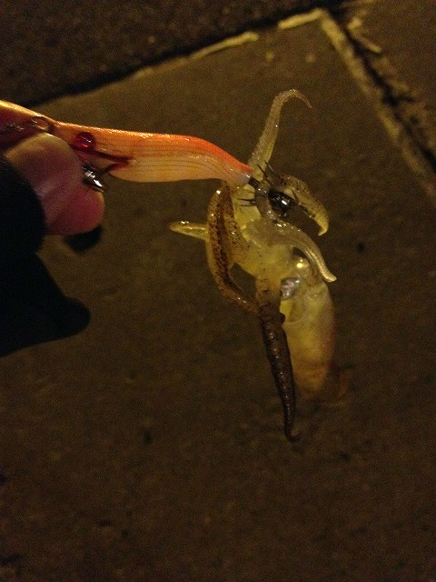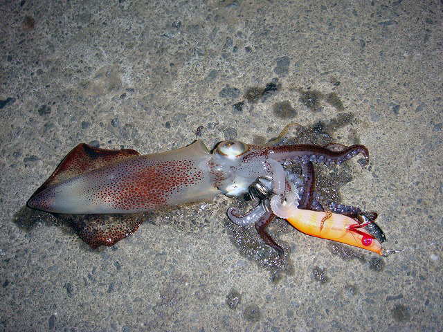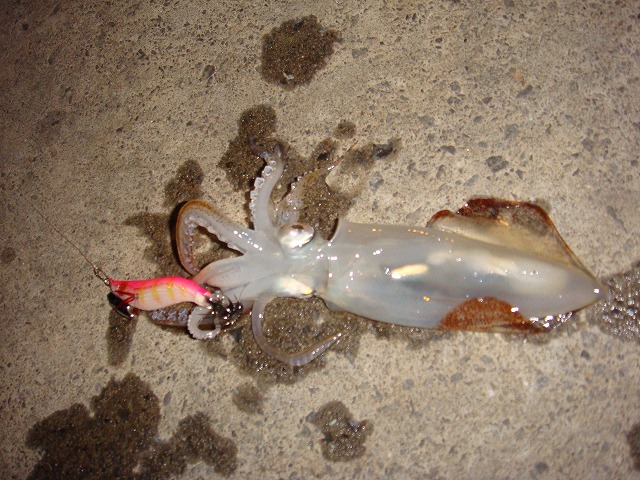 途中、キャストしてエギをフォールしている途中で 乗った 位ですから・・・